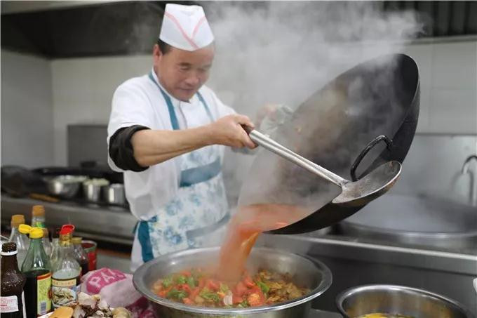 “今天是祖國母親的70歲生日,作為一名廚師,我們要用手中的炒瓢為大家炒制一頓可口的節(jié)日餐。”廚師楊懷讓笑著說到。