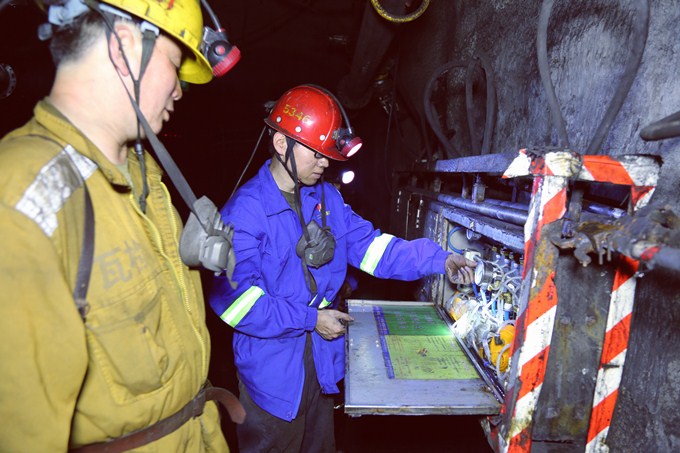 接到分工命令后,各專業(yè)技術人員迅速進入“挑刺階段模式”。在刮板輸送機機頭,機電部長魏衛(wèi)強用洋鎬使勁挖。憑經驗,他認為地錨深度不夠,存在安全隱患,便掏出筆記本記錄下來。在工作面端頭,安瓦檢班長郭建平發(fā)現(xiàn)在停止作業(yè)期間未懸掛防護欄后,立即上前制止并吩咐及時掛網(wǎng)。機電隊技術員張超超一會兒晃晃防護欄,看是否松動,一會兒查看電路接線是否安全……