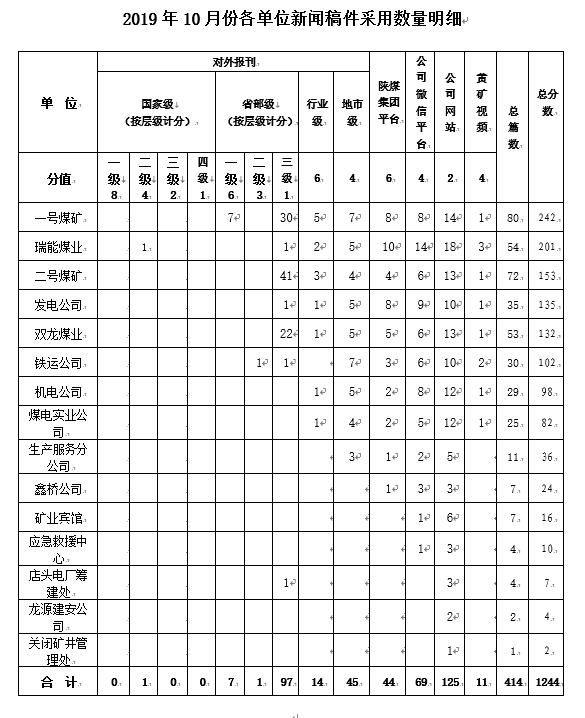 2019年10月份各單位新聞稿件采用數(shù)量明細(xì)