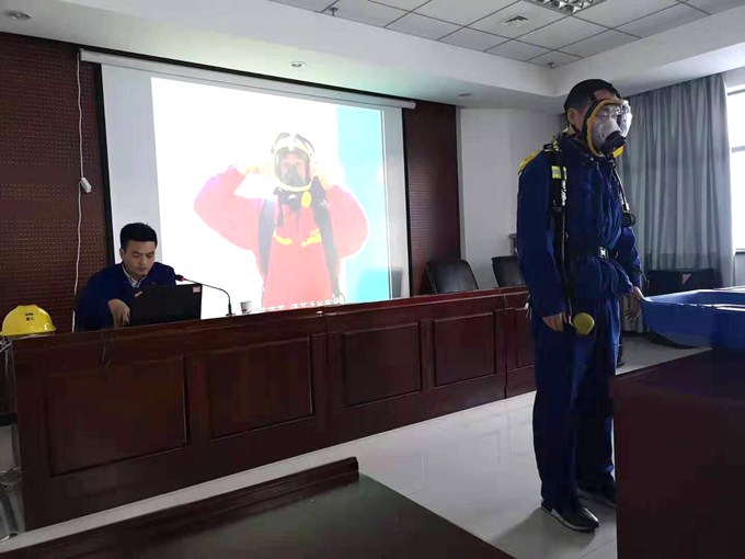 “正壓式呼吸器是一種自給開放式空氣呼吸器,具有重量輕、體積小、佩帶舒適、使用方便、性能穩(wěn)定等特點(diǎn)。下面請我們的演示人員就其具體使用方法為大家進(jìn)行詳細(xì)展示……”