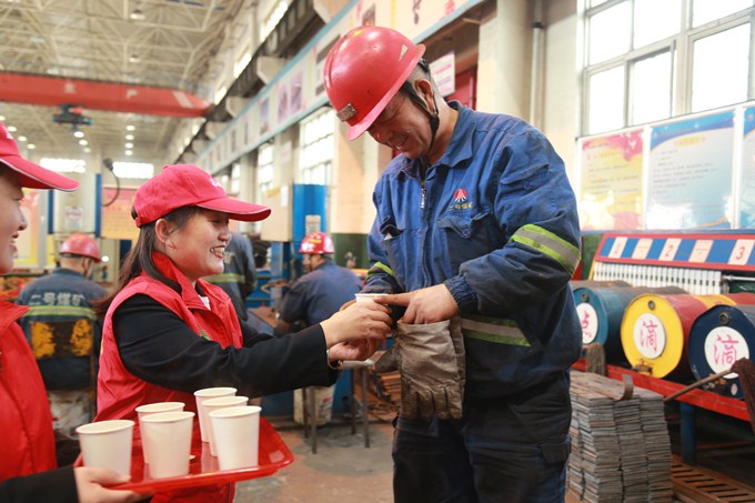 為了讓職工下井前和升井后都能第一時間喝上熱飲涼茶,從2009家屬協(xié)管會成立開始,“愛心水吧”同步“上線”,多年來,春來秋往、酷暑寒冬,不曾間斷。天冷時喝上一口熱豆?jié){,天熱時飲上一杯菊花茶,對于礦工們來說,再也沒有比這更暖心的事了。