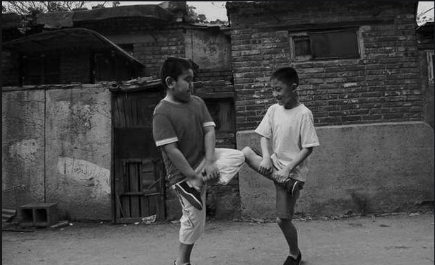 “斗雞”可不量?jī)芍浑u在斗,是兩個(gè)男孩子把各自的左腿的小腿平抬起來(lái),一只手抓著腳,一只手扶著膝蓋,蹦向?qū)Ψ?,看誰(shuí)能用抬起的小腿把對(duì)方抬起的小腿壓下來(lái)或者把對(duì)方的小腿挑下來(lái);蹦著、跳著,在娛樂(lè)中不知不覺(jué)就熱了起來(lái),一舉兩得?!皵D暖暖”就是幾個(gè)孩子靠著墻一邊向另一邊相向著擠,看哪邊把哪邊擠后退,擠著擠著就熱起來(lái)了?!疤そ睢焙汀疤唠ψ印迸⒆佣咀類?ài)玩,跳著、踢著自然就熱了。