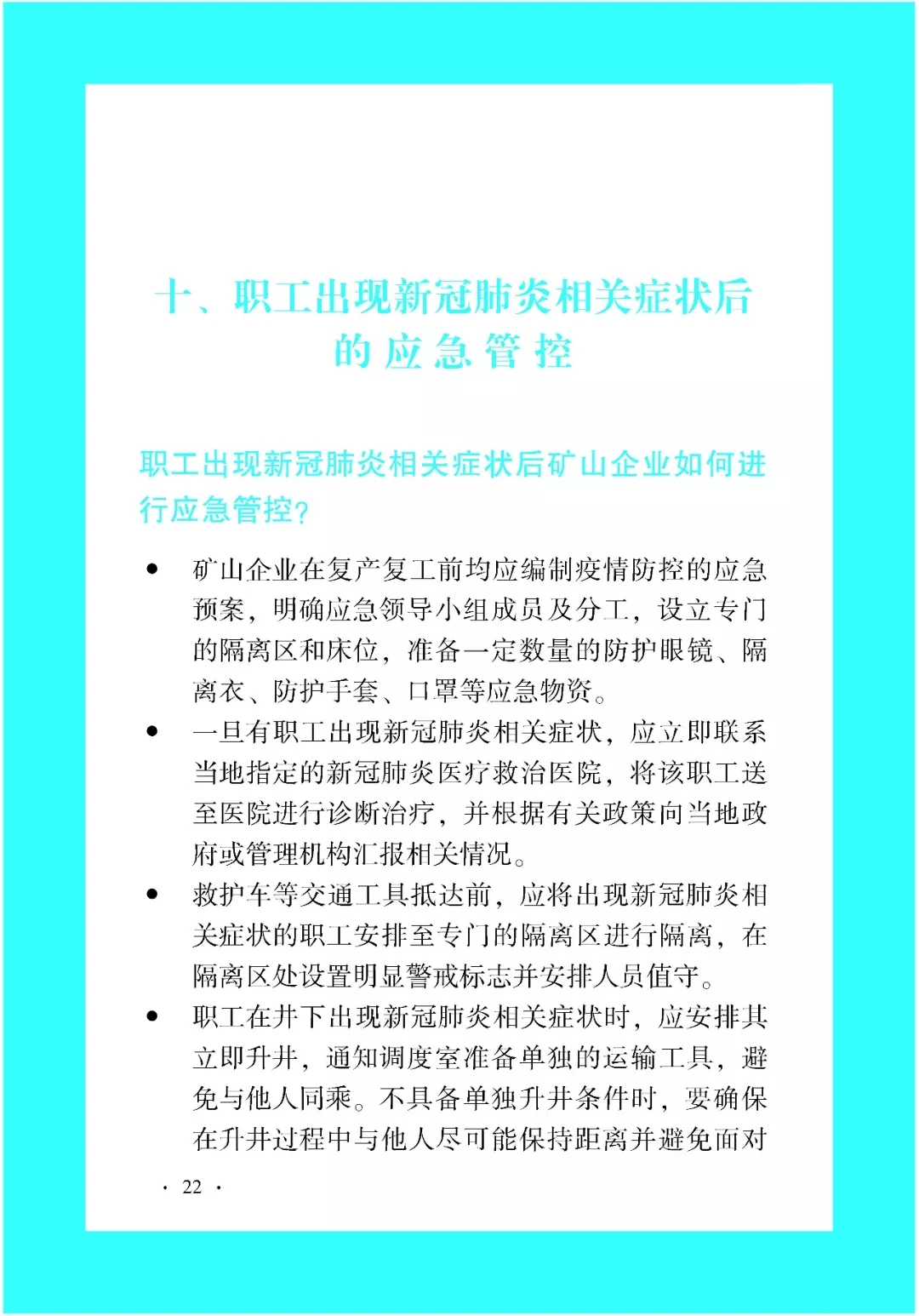疫情就是命令,防控就是責(zé)任。希望本手冊(cè)能夠?yàn)榫さV山企業(yè)的疫情防控和安全管理“ 雙到位” 提供幫助和參考。
