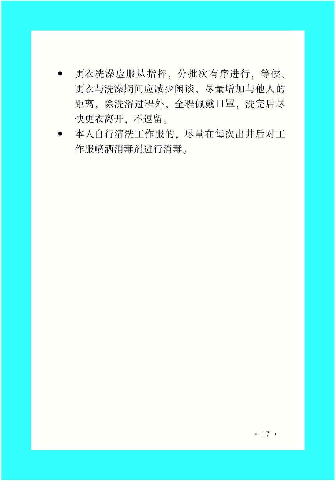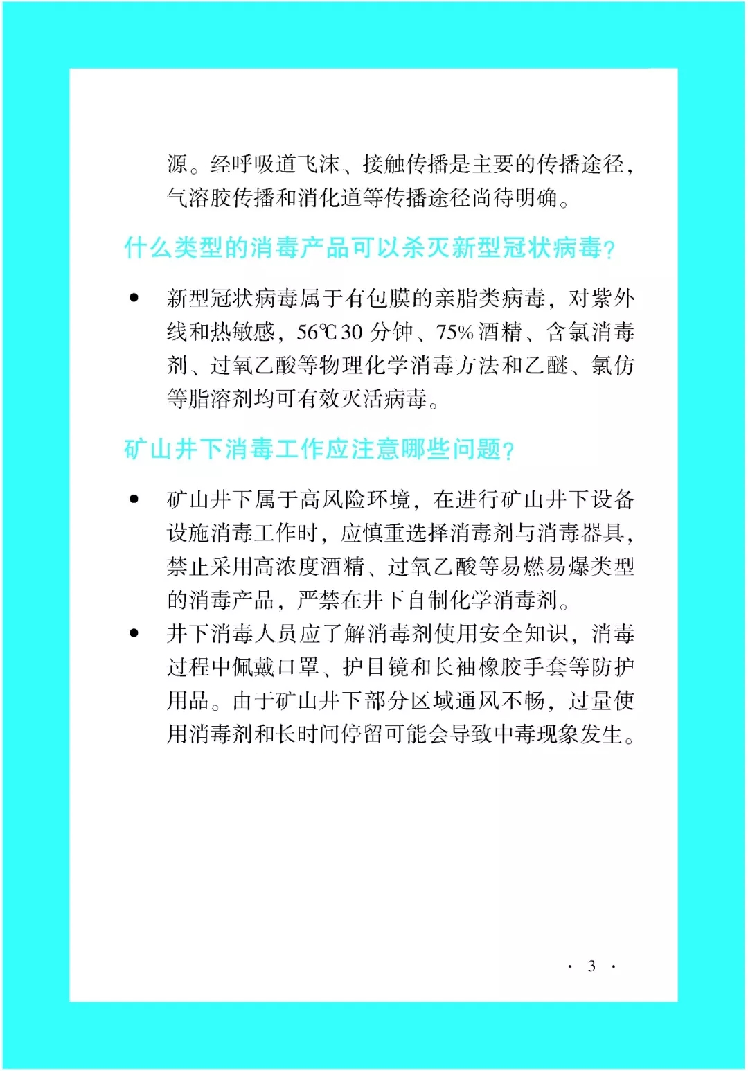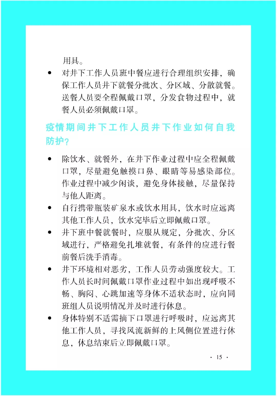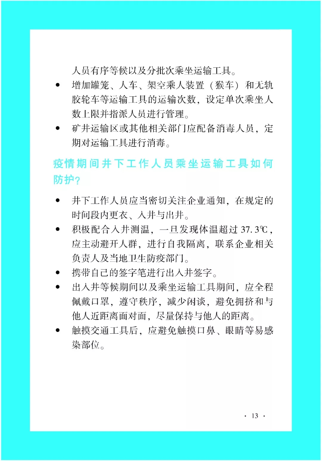 本手冊(cè)本著簡(jiǎn)明、實(shí)用的原則,以符合井工礦山實(shí)際疫情防控需要為出發(fā)點(diǎn)和落腳點(diǎn),針對(duì)井工礦山企業(yè)復(fù)工復(fù)產(chǎn)準(zhǔn)備、日常生產(chǎn)作業(yè)流程主要環(huán)節(jié)以及應(yīng)急管控等方面提出了相應(yīng)的防范措施,對(duì)井工礦山企業(yè)和從業(yè)人員如何做好疫情防控提出了相關(guān)建議。
