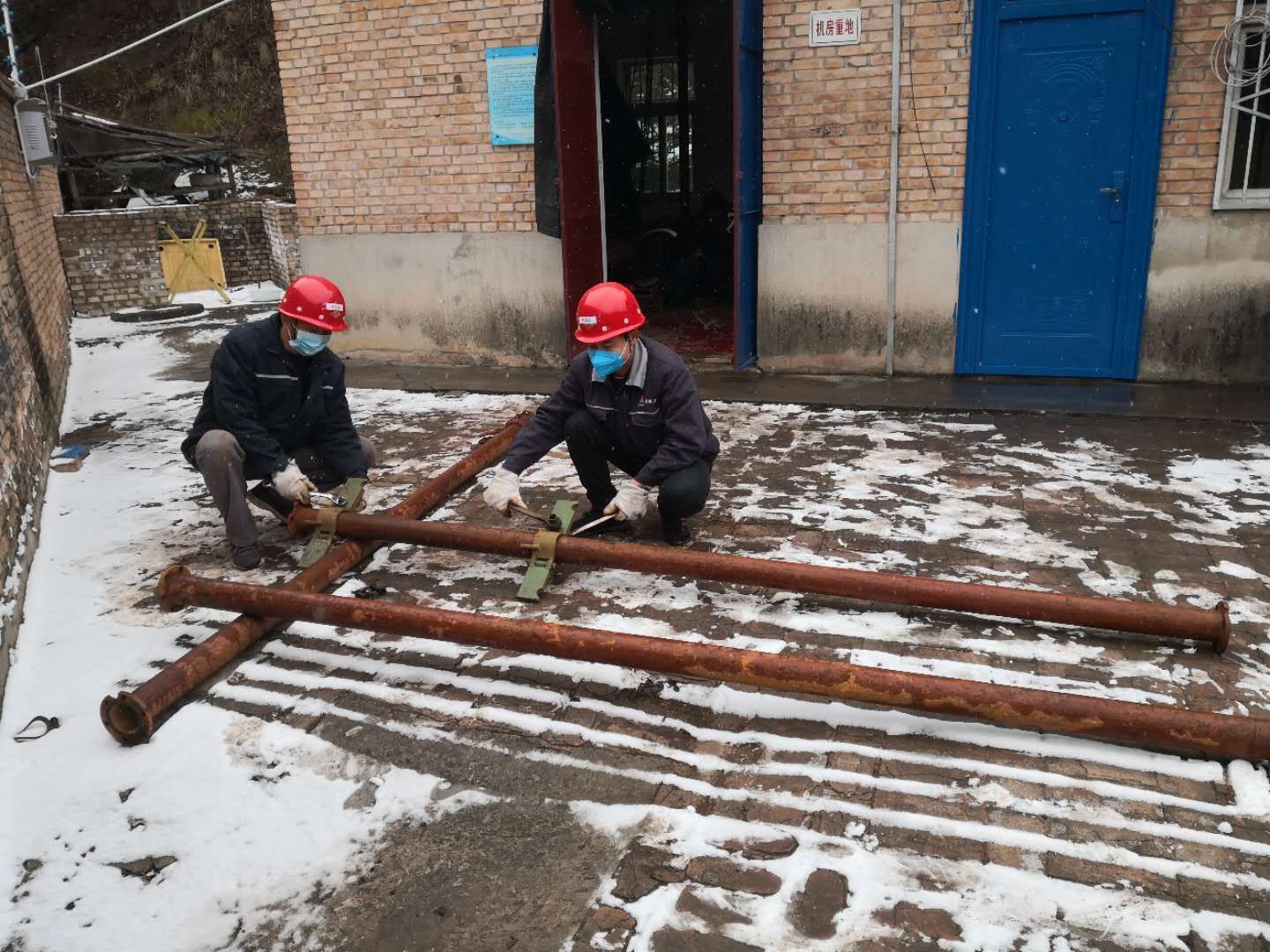 在狹小的2號(hào)水泵房里,不時(shí)傳來(lái)嘈雜的聲音,只見(jiàn)五六個(gè)工作人員正在起吊抽水管道,更換連接螺栓,院子里還有兩人給管道固定卡子,為恢復(fù)水泵管道提前做好準(zhǔn)備,現(xiàn)場(chǎng)繁忙且有序地進(jìn)行著。