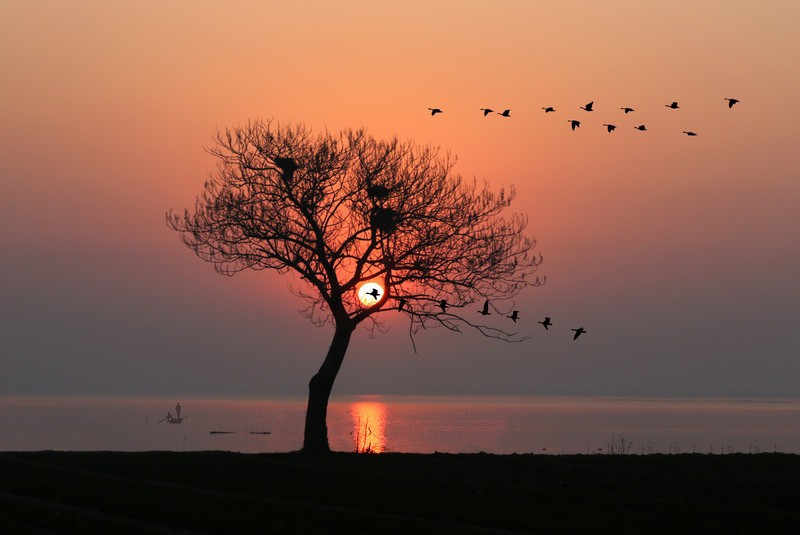 總是有種錯(cuò)覺,規(guī)律的回到故鄉(xiāng),一年一次,或者數(shù)月一次,家就還是那個(gè)家,人就還是那些人。穿上那些有些舊的衣服,就好像回到了舊日,隔絕了時(shí)間,把我們封在不愿長(zhǎng)大的舊時(shí)光里。人們都不會(huì)老,爸媽就要下班回家,同學(xué)們還在樓下等著見面聊天,崩爆米花的老爺爺還在轉(zhuǎn)著黑乎乎的筒,鄰居家的小男孩踢球又忘了吃飯。直到某一天,推倒的舊平房,關(guān)了的老店,離世了再也見不到的某某……就像一張白卷,鋪在了我們的面前,我們提起筆,呆呆的,再也完不成記憶里家的答卷。天邊褪去了最后一件霞彩,披上了薄薄的暮紗,暮色籠罩了大地,那在晚霞中錘煉的雄鷹此時(shí)也已遁入荒蕪的悠悠樹影,銷聲匿跡。遠(yuǎn)處錯(cuò)落有致的房舍炊煙裊裊,窗戶隱隱約約亮起了燈光,偶爾傳來幾聲犬吠,是誰在暮色中邁著歸家的步伐?
