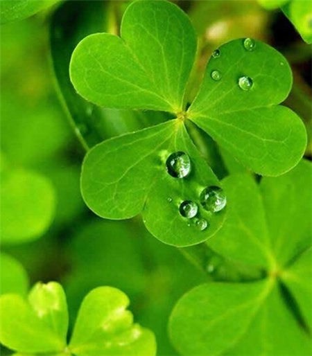 三葉草,它積極樂觀。它是愛爾蘭的國花,它是幸福的象征。它葉柄上托著三片黃綠色的葉片,每枚葉片都呈秀麗優(yōu)雅的心形,三枚心形葉片親密地聚攏在一起,形成了一枚近乎于圓形的一片。