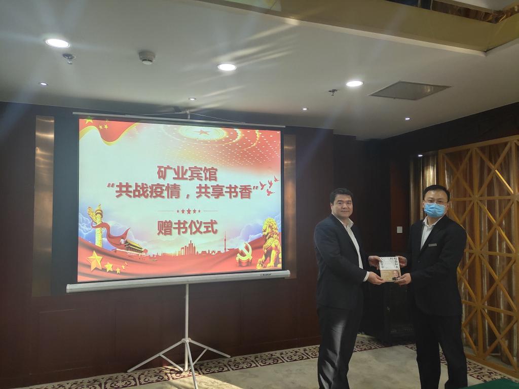 4月29日下午,礦業(yè)賓館在三樓黃河廳舉行“共戰(zhàn)疫情、共享書香”贈書儀式在,全體黨員干部共計14人參加??偨?jīng)理吳渭濤和黨支部書記黃紅俠向干部職工發(fā)放《稻盛和夫的人生哲學(xué)》29冊。