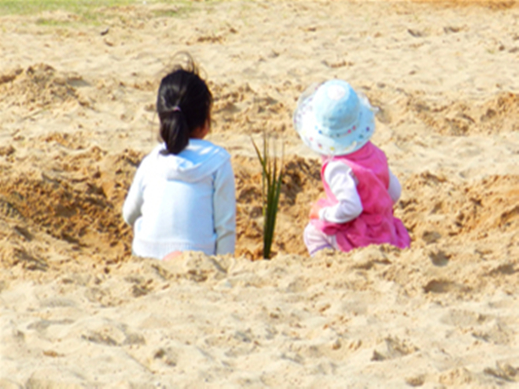 腳踩著細(xì)沙