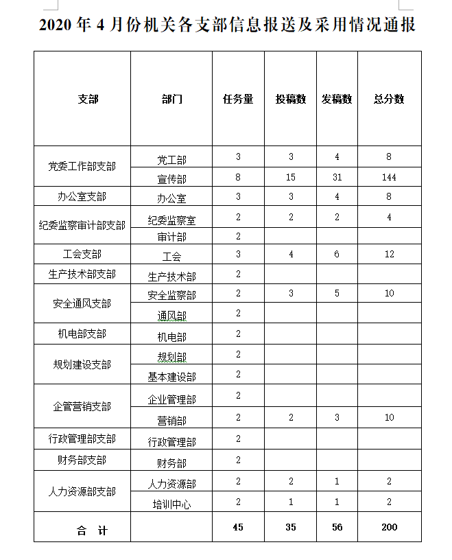 2020年4月份機(jī)關(guān)各支部信息報(bào)送及采用情況通報(bào)