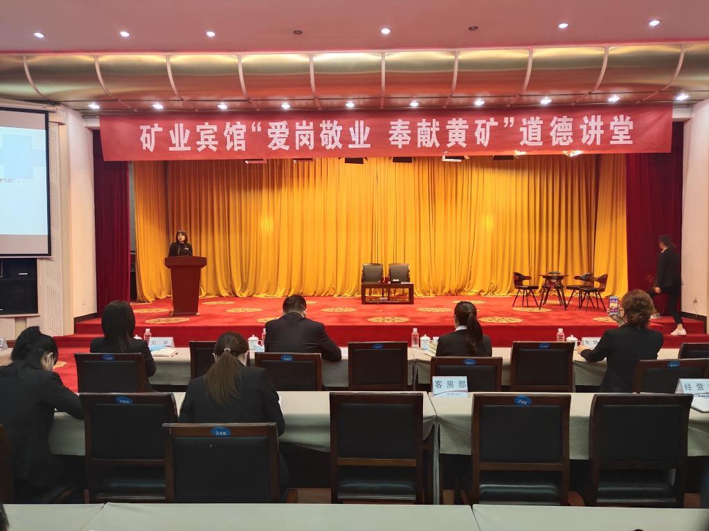 道之以德,齊之以禮。5月13日上午,礦業(yè)賓館黨支部開展以“愛崗敬業(yè)、奉獻黃礦”為主題的特色道德講堂活動。通過“省自身、唱歌曲、學模范、講故事、看小品、談感想”六個環(huán)節(jié),向模范致敬,為先進點贊,傳遞道德正能量。