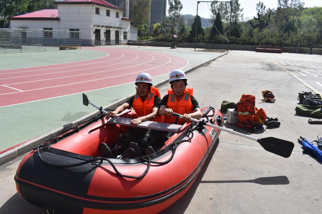 此次培訓(xùn)和演練,主要針對配置的橡皮艇、救生衣、破拆工具、自救器等裝備進行訓(xùn)練,中心骨干進行理論講解和實地操作,他們將橡皮艇放在訓(xùn)練場,在“旱地”上模擬洪澇災(zāi)害開展有針對性地演練,夯實救援能力,以達到實戰(zhàn)效果。