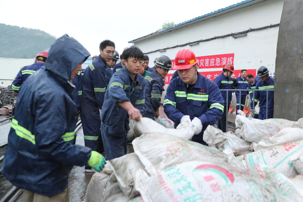 9時36分,井口防洪、水情監(jiān)測、井下機電、技術保障、通信聯(lián)絡及監(jiān)控監(jiān)測等各搶險小組成員迅速從四面八方帶著工具在井口前集結完畢,整裝待命。