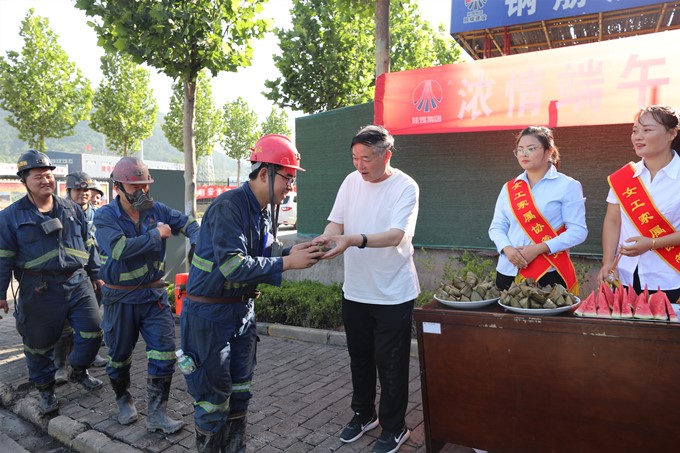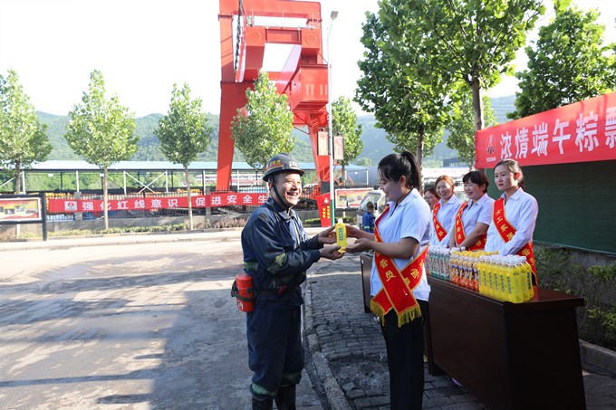 在現(xiàn)場,不論是即將要下井的,還是剛剛升井的職工,都開心依次接過家屬協(xié)管員們送過來的粽子、西瓜等,臉上洋溢著滿意的笑容。