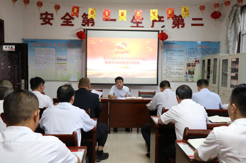 “學(xué)習(xí)永無止境,學(xué)習(xí)好、貫徹好、落實(shí)好習(xí)近平總書記來陜考察重要講話精神,從思想上守牢底線、在行動上真抓實(shí)干、在落實(shí)上創(chuàng)新求變,切實(shí)以敬重之心提高站位、以敬業(yè)之身勇挑重?fù)?dān)、以敬愛之本服務(wù)職工,為實(shí)現(xiàn)公司安全穩(wěn)定和諧發(fā)展砥礪奮斗?!?月17日,在綜掘聯(lián)合支部宣講時,張大勇這樣勉勵該支部黨員干部。(邵慶芳)