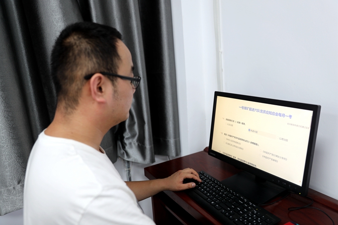 “什么是“兩學一做”?什么是合格黨員?多久參加一次黨員大會?黨員大會研究什么事項……”8月6日,掘進六隊老黨員寇栓海通過APP的形式進行黨建知識答題。