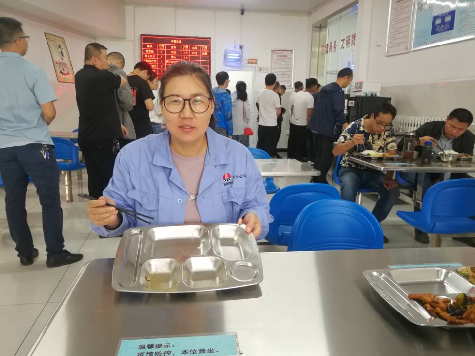 供電所職工呂紅利在打飯窗口對(duì)售餐人員說道。