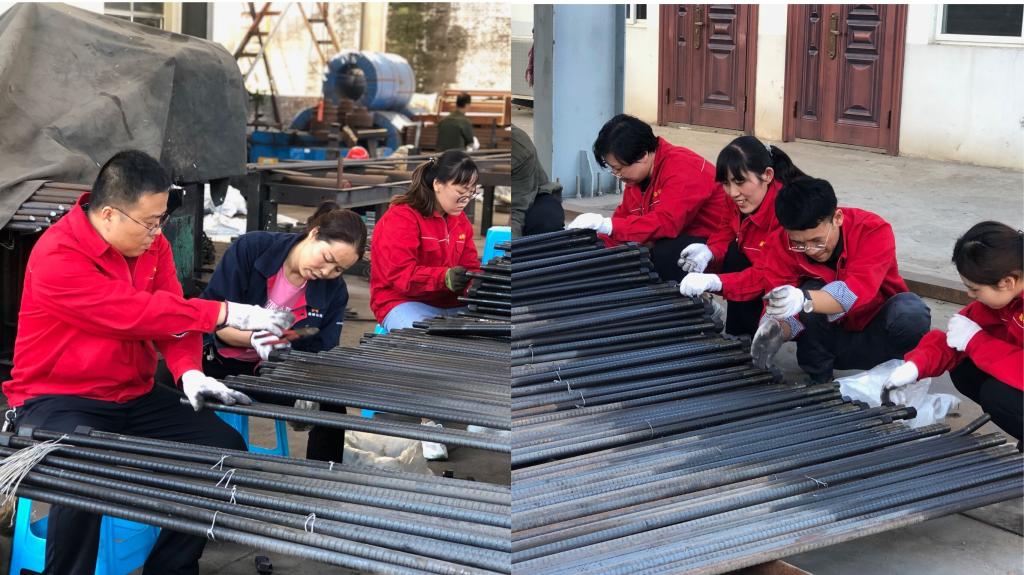 在產(chǎn)成品存放處,映入眼簾的是一片熱火朝天的工作場(chǎng)景,義務(wù)支援“大軍”緊張地忙碌著。到達(dá)現(xiàn)場(chǎng)后,大家聽(tīng)從分管領(lǐng)導(dǎo)統(tǒng)一調(diào)度,有的在清點(diǎn)根數(shù)、有的在拆卸原有防松螺母、有的在安裝加長(zhǎng)螺母……他們來(lái)自安全監(jiān)察、市場(chǎng)銷售、財(cái)務(wù)會(huì)計(jì)、業(yè)務(wù)核算等各個(gè)崗位,是平常大家眼中“肩不能挑,背不能扛”的“文書(shū)生”“弱女子”,他們的參與縮減了與一線職工的距離感,更帶動(dòng)了一線員工的工作熱情,激發(fā)他們工作的積極性。