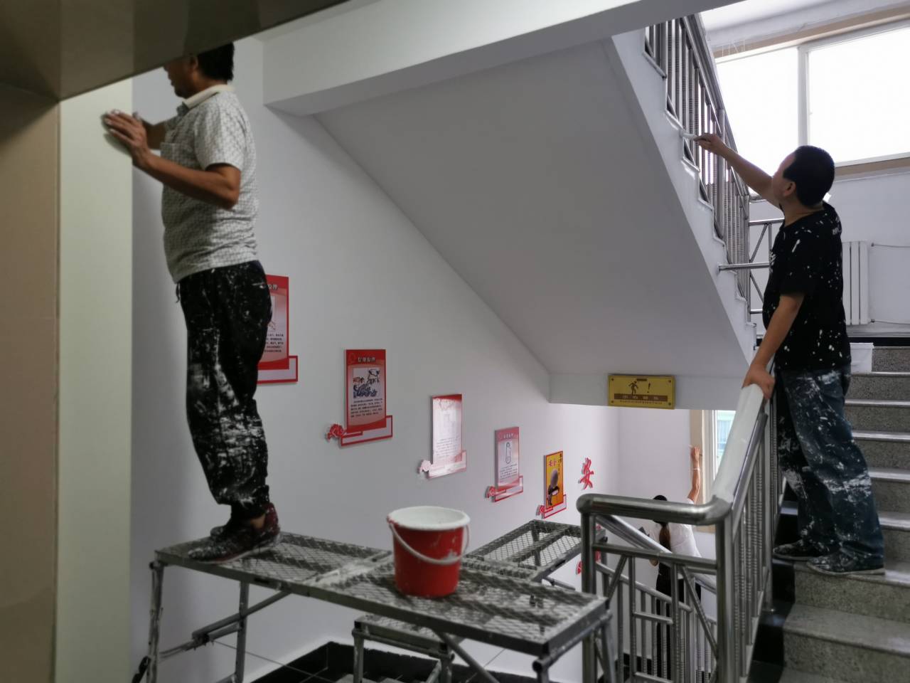 1#公寓樓隨著居住年限的增加,室內(nèi)墻面污漬、墻皮脫落現(xiàn)象,影響公寓整體環(huán)境和住宿職工的生活品質(zhì)。該公司積極討論研究,制定維修方案,組織協(xié)調(diào)相關(guān)部門進(jìn)行施工改造。