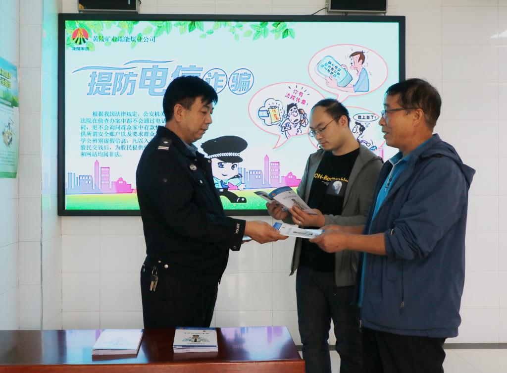 該公司為增強普法效果,適應新形式下普法工作的要求,結合工作實際,利用微信、QQ群、報欄、LED電子屏等宣傳陣地,充分發(fā)揮覆蓋面廣、傳播速度快等優(yōu)勢,擴大宣傳輻射面。并通過發(fā)放《反電信網(wǎng)絡詐騙手冊》《信息保護手冊》等法律知識書籍、宣傳單等職工家屬易于接受的方式開展反電信詐騙宣傳活動,在礦區(qū)營造了濃厚的法制宣傳氛圍。