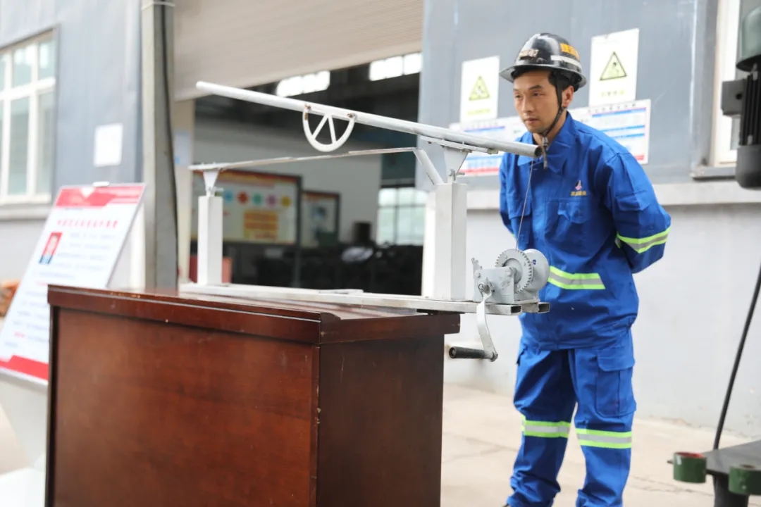 無軌膠輪車擦火柴、巧辨藥品等項(xiàng)目吸引了現(xiàn)場觀眾高度評價(jià)?!懊げ鹈ぱb氧氣呼吸器”、“蒙眼放置點(diǎn)火絲”等“絕技絕活”項(xiàng)目競技激烈,各單位現(xiàn)場展示的職工上演了一場精彩絕倫的巔峰對決。
