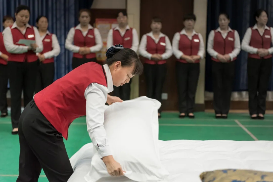 “絕技絕活就是一個(gè)熟能生巧的過程,今天能夠向大家進(jìn)行展示感覺很榮幸,希望通過我們的努力為每一位入住的客人提供最溫馨舒適的環(huán)境?!痹S東霞說。