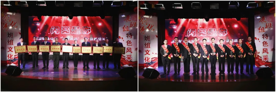 晚會上,與會領(lǐng)導(dǎo)與勞動模范、技能大師、道德模范等代表共同為生產(chǎn)服務(wù)分公司綜掘三隊生產(chǎn)二班、煤電實業(yè)高層公寓班、發(fā)電公司巾幗雙新大學(xué)生班、二號煤礦掘進(jìn)二隊生產(chǎn)一班等11個金牌班組,李振國、王新艦、姜勇等10 名十佳班組長,潘博、王小強(qiáng)、魏彬等15名優(yōu)秀班組長頒獎。