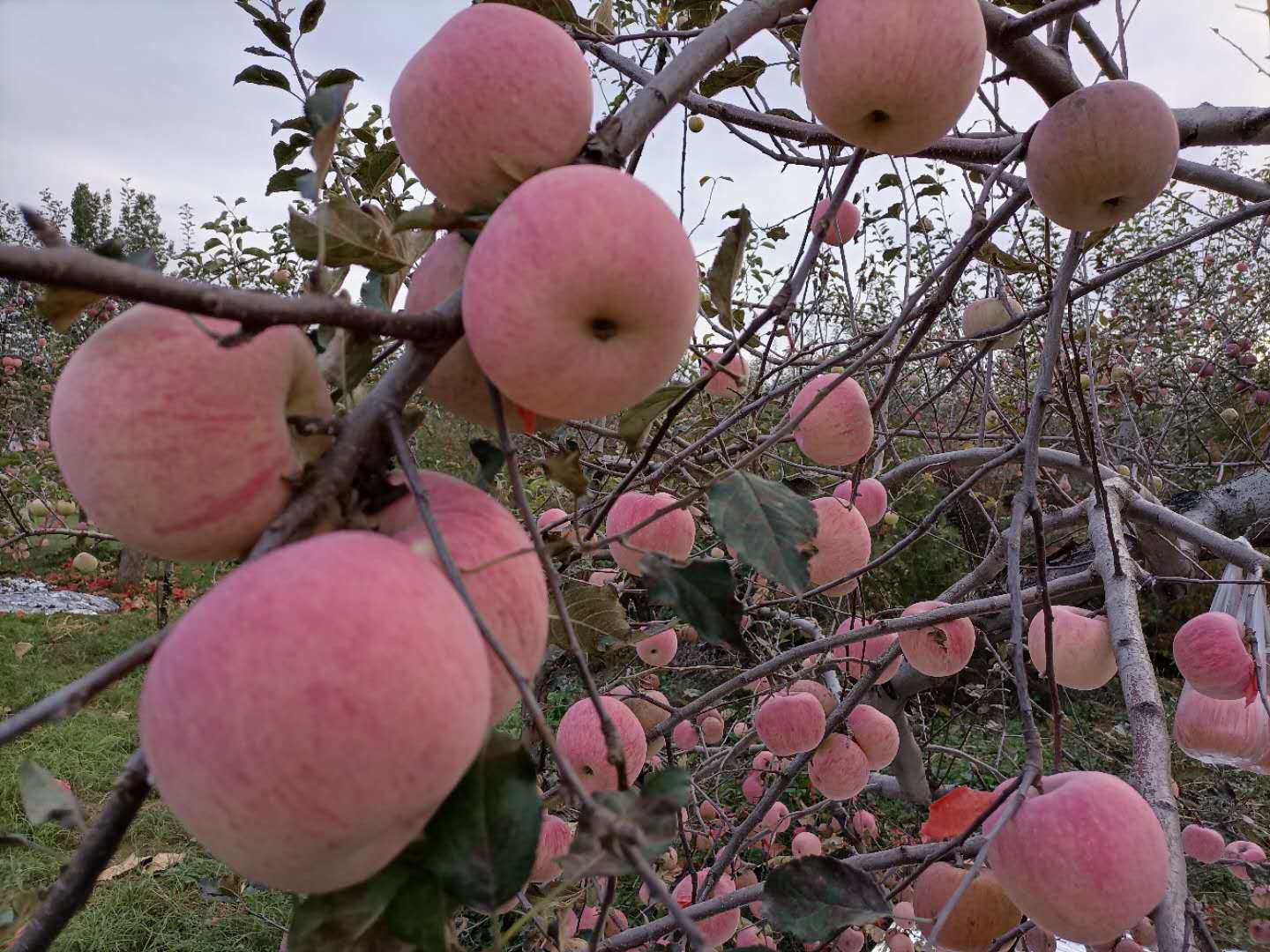 套袋,歷史發(fā)展的必然產(chǎn)物,一個(gè)小蘋(píng)果套一個(gè)紙袋,當(dāng)然也有套塑料袋的,不過(guò)總看起來(lái)給人很不舒服的感覺(jué),這是個(gè)腦力活,更是個(gè)體力活,鍛煉的不僅僅是智商,更重要的是耐力,一人腰間一個(gè)布包包,一沓一百個(gè),滿園子只能聽(tīng)見(jiàn)撕拉撕拉的套袋聲和汗水掉在地上的啪嗒聲,根據(jù)產(chǎn)量的大小,少則七八天,多則一個(gè)月,天天重復(fù)著枯燥而又勞累的活,但不能松懈,畢竟是下苦人,趕不上節(jié)令,就會(huì)毀了無(wú)數(shù)人逍遙的夢(mèng)。