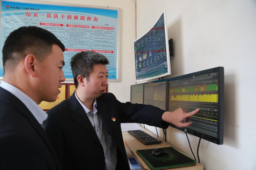 “這條綠色的虛線就是人工割的一刀基準(zhǔn)線,黃色的虛線就是LASC系統(tǒng)自動(dòng)調(diào)整修正形成的軌跡線……”11月2日上午,在二號(hào)煤礦211智能化綜采工作面地面監(jiān)測(cè)平臺(tái)前,該礦綜采一隊(duì)支部書記史磊正給職工仔細(xì)講解著智能化綜采工作面投入的“新神器”。