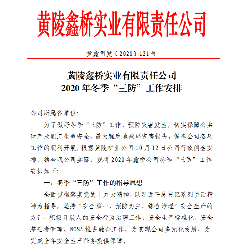 圍繞冬季“三防”工作的突發(fā)性、多變性等特點,不定期進(jìn)行專項檢查。對生產(chǎn)車間、辦公樓、加油站等場所開展了多次排查活動,及時整改落實存在問題和隱患。進(jìn)一步完善壓力容器檢修、供暖管路、供水管道、供電線路等巡查制度,加強車輛和設(shè)備維修檢查,嚴(yán)格易燃易爆物品管理。同時,做好天氣突然降溫、大風(fēng)寒冷天氣信息預(yù)報工作。目前,與職工簽訂《鑫橋公司防煤氣中毒及冬季交通安全職工告知書》105份,通過檢查、通報、整改、回執(zhí)、回頭望等工作,實現(xiàn)閉環(huán)管理,確保公司安全過冬。