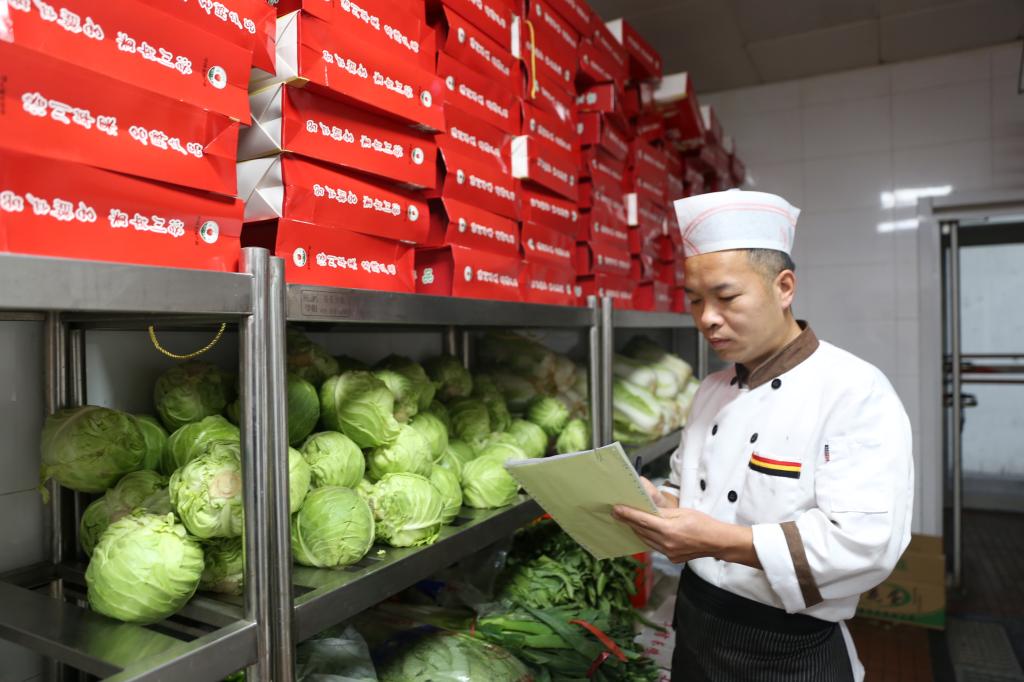 “供貨商送貨時我們嚴把質(zhì)量關(guān),少用成本過高的反季蔬菜,盡量使用當季時令蔬菜,并由專門驗收員對蔬菜干貨、生鮮冷凍食品進行詳細察驗?!痹摰V餐廳經(jīng)理高銅成介紹,“對檢驗到不達標、不合格的食材現(xiàn)場退換,不在驗收環(huán)節(jié)浪費原材料?!?/p>