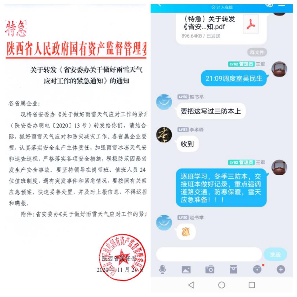 “請(qǐng)值班人員認(rèn)真學(xué)習(xí)陜西省《關(guān)于做好雨雪天氣應(yīng)對(duì)工作的緊急通知》通知,就雨雪惡劣氣候下鐵路安全保暢工作進(jìn)行部署,并轉(zhuǎn)發(fā)各工區(qū)、車站、班組認(rèn)真抓好落實(shí)?!?1月21日鐵運(yùn)公司QQ群里傳來了特急通知。