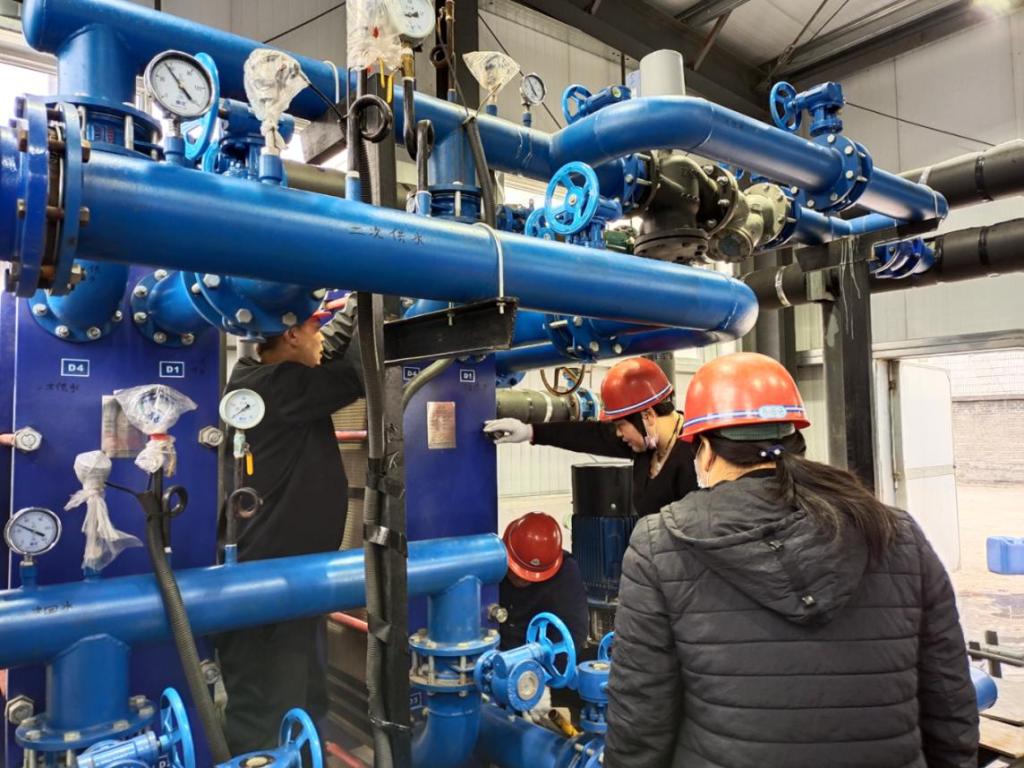 大家不畏嚴寒,持續(xù)作戰(zhàn),廣開工作思路,發(fā)揚吃苦耐勞和廢物利用的創(chuàng)新精神,急中生智用報廢的垃圾桶焊接成清洗水槽,分工合作,加班加點,提高板片清洗效率。經(jīng)過十幾個小時的不懈努力,2組400多塊板片上附著的頑固污垢和雜物被徹底清洗去除,同時還安裝檢查板片有無滲漏情況,對外網(wǎng)閥門一并進行檢修,不放過任何一處隱患,確保降低損耗,有效減少熱量流失,提高換熱效率,保障管網(wǎng)安全穩(wěn)定運行,為住戶提供高質量供熱。