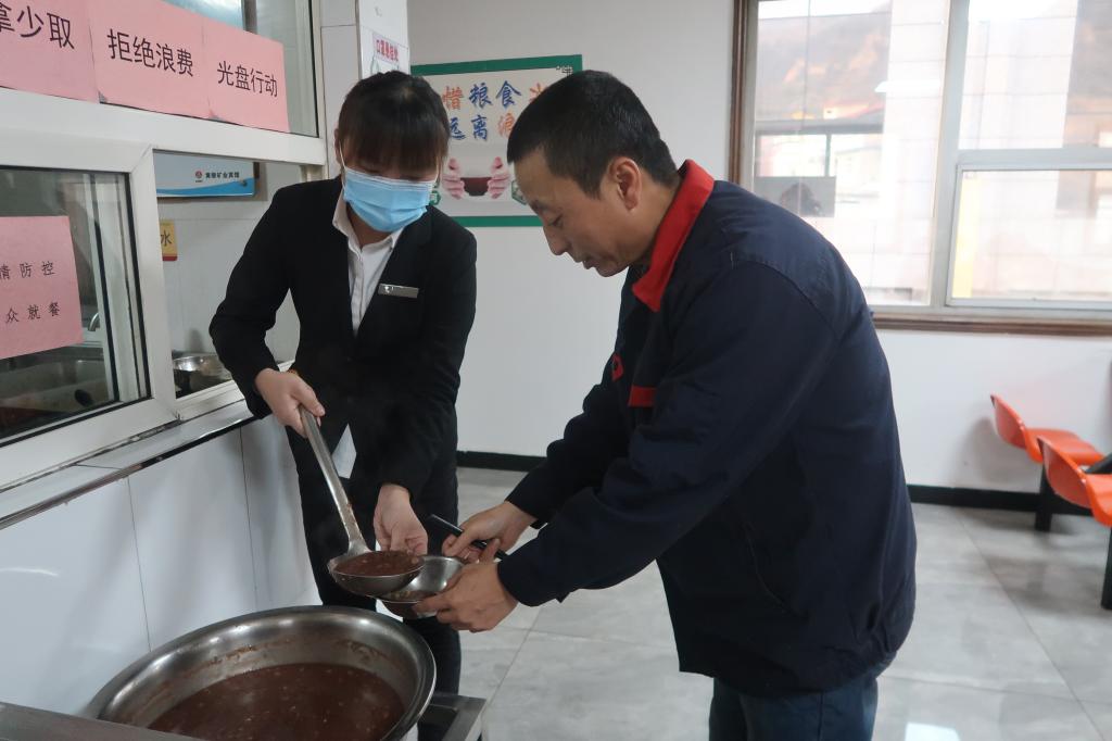 “同志們,粥出鍋了!大家排好隊,一個個來。”正值中國傳統(tǒng)節(jié)日臘八節(jié),礦業(yè)賓館員工餐廳就已經(jīng)熱鬧了起來,大家端著碗筷來到員工餐,等待著第一鍋臘八粥出鍋。