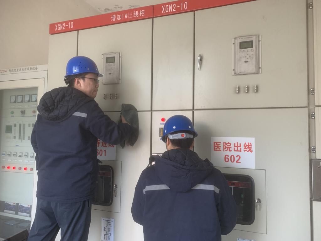 時值寒冬,天氣異常寒冷,然而在中心區(qū)箱變現(xiàn)場,大家卻仍不畏嚴(yán)寒,有清掃配電柜灰塵的,有緊固接線端螺栓的,還有清理地面衛(wèi)生的,大家忙的不亦樂乎。