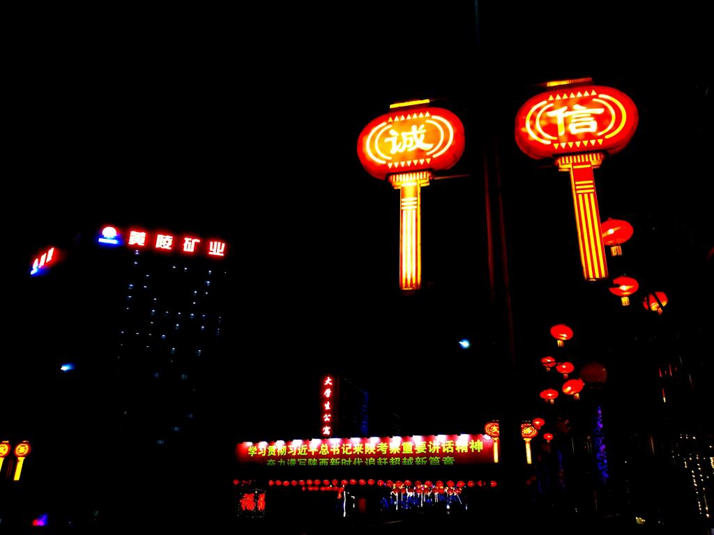 步入礦區(qū),張燈結(jié)彩、燈光璀璨。每一棵光鮮亮麗的樹上都結(jié)滿了紅彤彤的柿子似的,閃閃發(fā)光,熠熠生輝的彩燈纏繞在樹干上顯得格外的妖嬈嫵媚,富有中國元素的各種造型的彩色燈籠掛在樹尖兒上,寓意點(diǎn)亮今天、照亮明天、迎接未來。