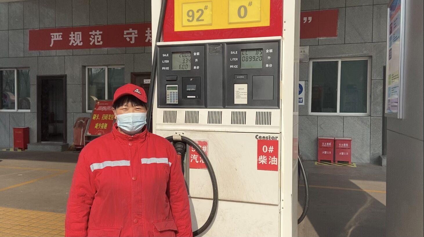 “滴滴”,一陣汽車?yán)嚷晱牡V區(qū)加油站的加油機(jī)旁傳來,只見吳志蓮快速整理了一下衣帽,走出值班室,遠(yuǎn)遠(yuǎn)地就開始招呼,“新年好,請問您要加92號還是95號汽油,加多少升?請您打開油箱蓋!”……加油完畢,吳志蓮雙手送上一卡通,“您好,本次加油共計(jì)198元,謝謝您的惠顧,祝您一路順風(fēng)!”吳志蓮微笑著目送汽車走遠(yuǎn),才搓搓手捂著耳朵小跑回值班室,做起加油記錄。