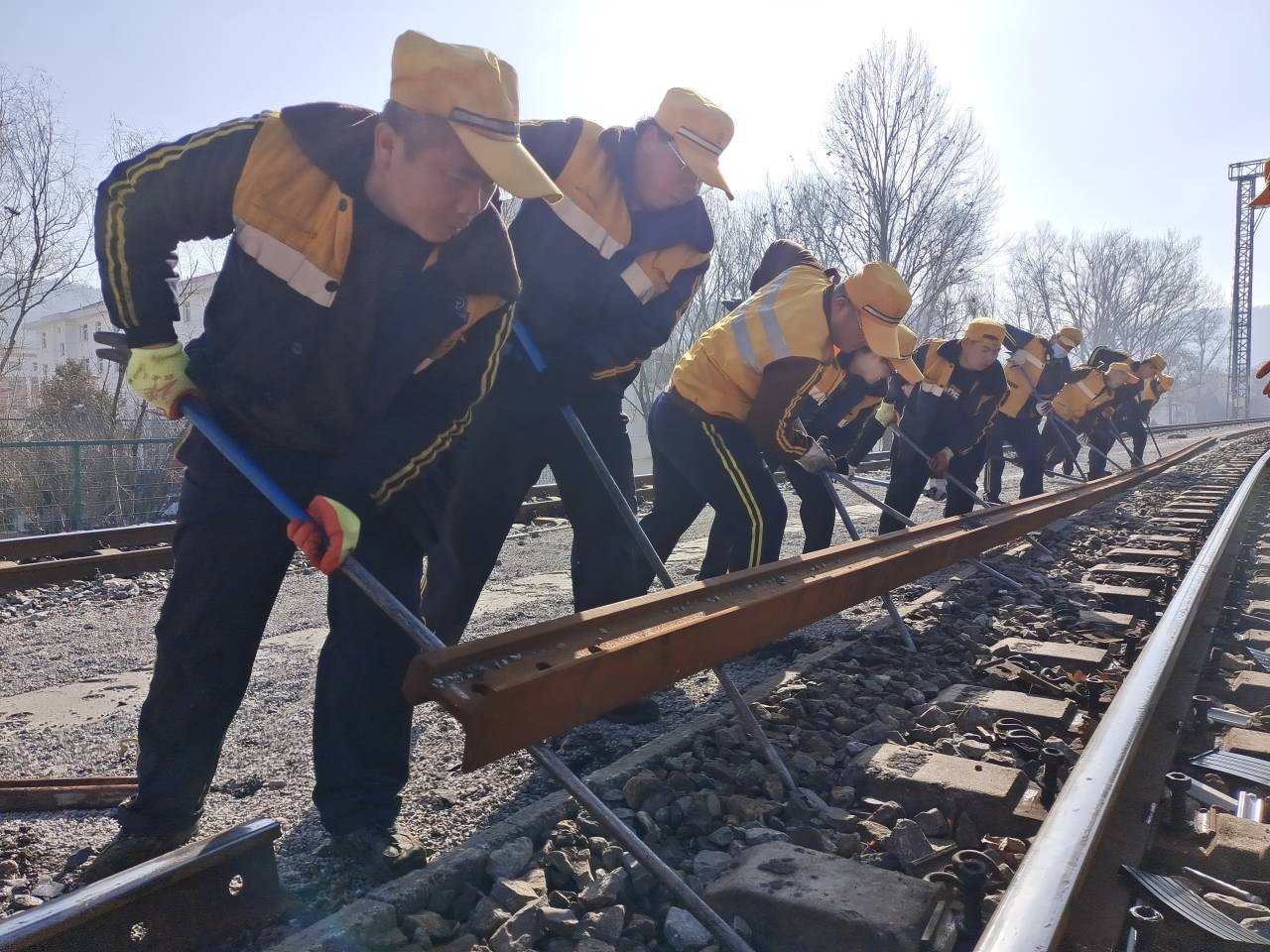 3月2日9:00,鐵運(yùn)公司工務(wù)段七里鎮(zhèn)工區(qū)工長(zhǎng)馬戰(zhàn)明大聲呼喊著口令,正指揮作業(yè)人員有條不紊的進(jìn)行撥軌作業(yè)。