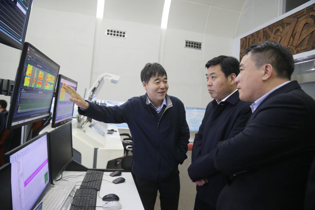 在二號(hào)煤礦調(diào)度指揮中心詳細(xì)了解了該礦智能礦井建設(shè)情況。(楊新亞 張波 李柏順)