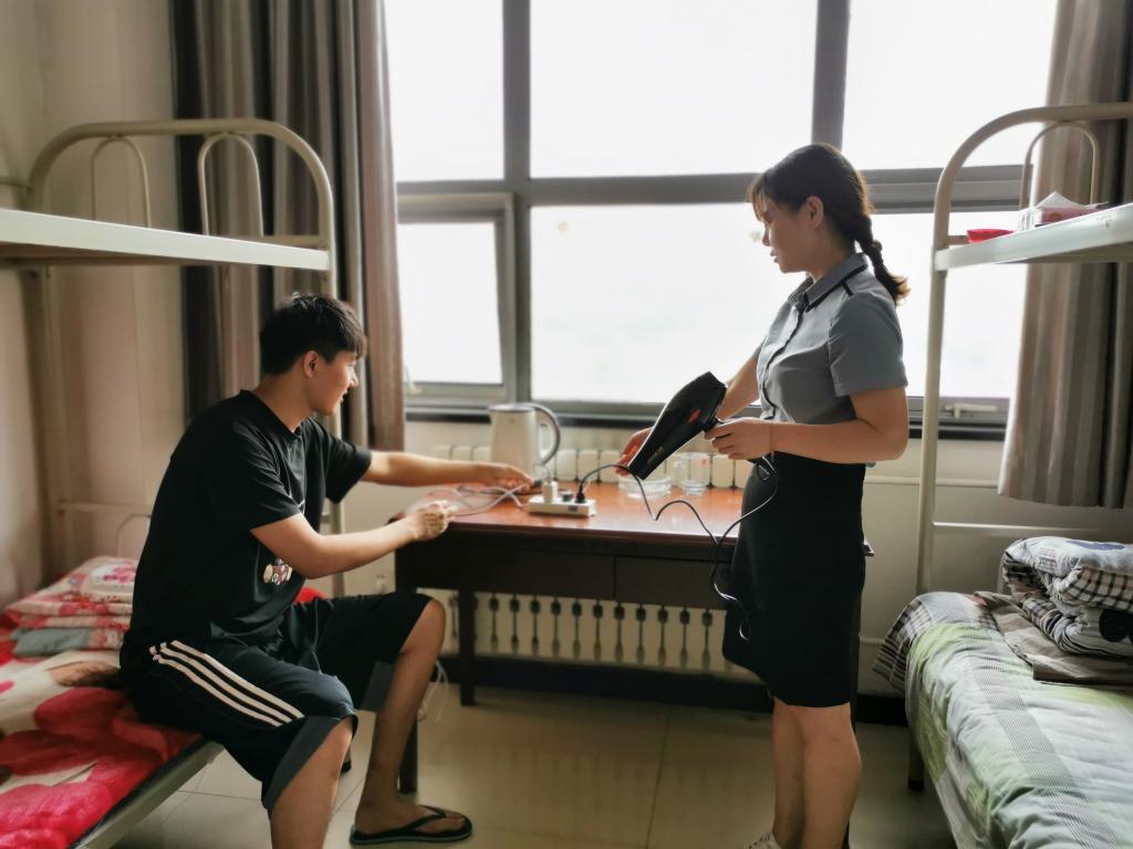 “清理房間衛(wèi)生時,不能用濕抹布擦拭電源插座,衛(wèi)生清理完畢,必須檢查確認房間電器關閉狀態(tài)……”在公寓班前會上,管理員反復強調(diào)用電安全注意事項,從思想上抓牢日常用電安全管理工作。