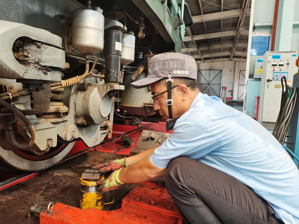7月31日9點30分,火辣辣的太陽烘烤著大地,卷起層層熱浪。橋山腳下的天氣正在向全天最高溫度沖刺,鐵運公司機務(wù)段檢修車間在炙熱的太陽烘烤下就像一個大蒸籠,此時,檢修車間制動班組班長張選紅和他的工友們整裝待發(fā),即將為他們今天的檢修作業(yè)任務(wù),機車鏇輪做準(zhǔn)備。
