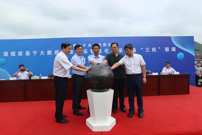 “下面我宣布:雙龍煤業(yè)薄煤層基于大數(shù)據(jù)精準(zhǔn)開采智能化綜采設(shè)備‘三機(jī)’聯(lián)調(diào)圓滿成功!”
