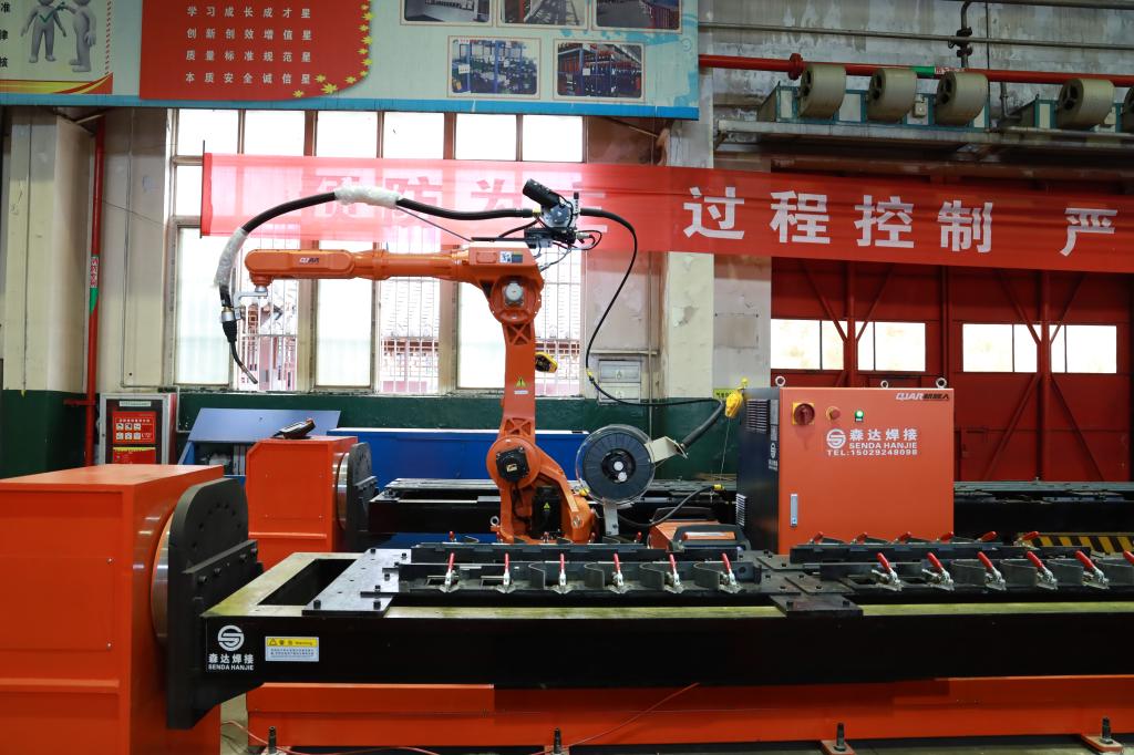 “只要給機(jī)器人設(shè)定好焊接參數(shù)和運(yùn)動(dòng)軌跡,輕輕按動(dòng)按鈕,它就會(huì)自動(dòng)尋位、焊接、清理焊槍,并且精確重復(fù)焊接動(dòng)作。原來(lái)需要30分鐘焊接完成的工件,現(xiàn)在僅需五六分鐘即可完成,工作效率比人工提高7倍,不僅焊接速度快,而且焊接質(zhì)量穩(wěn)定?!痹撥囬g主任周小明說(shuō)。