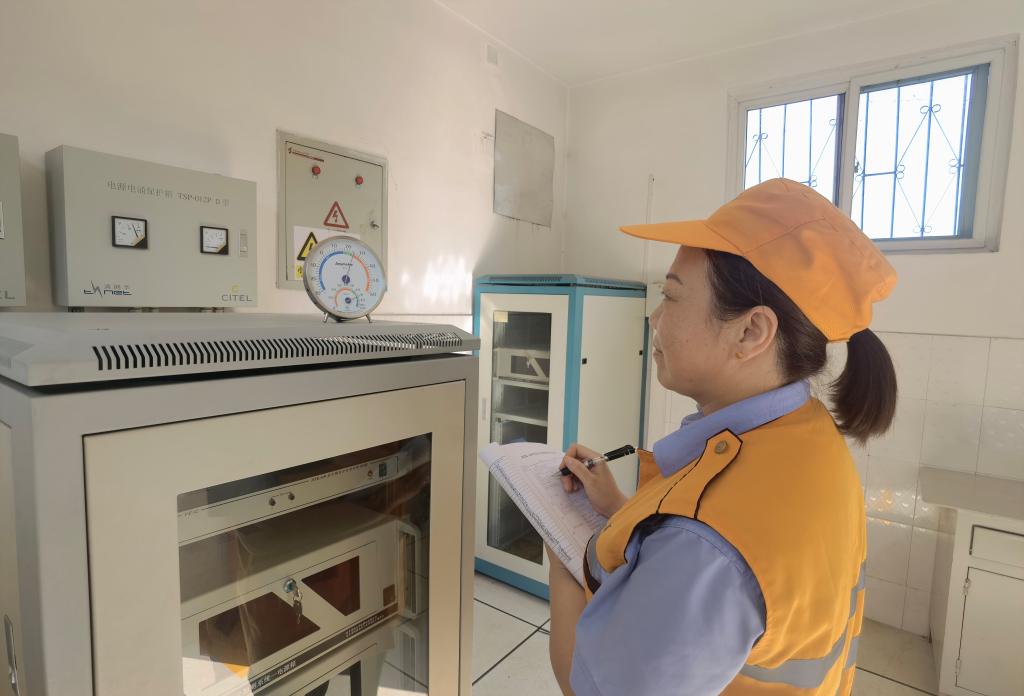 “今天室外溫度在35℃左右,咱們紅外線軸溫探測站室內(nèi)設(shè)備過得還比較舒服,你看看濕溫度表,表針都在綠區(qū)、舒適區(qū)呢”。8月24日,鐵運(yùn)公司車輛段紅外線探測員馬艷鳳在巡檢設(shè)備時(shí)開心地說到。