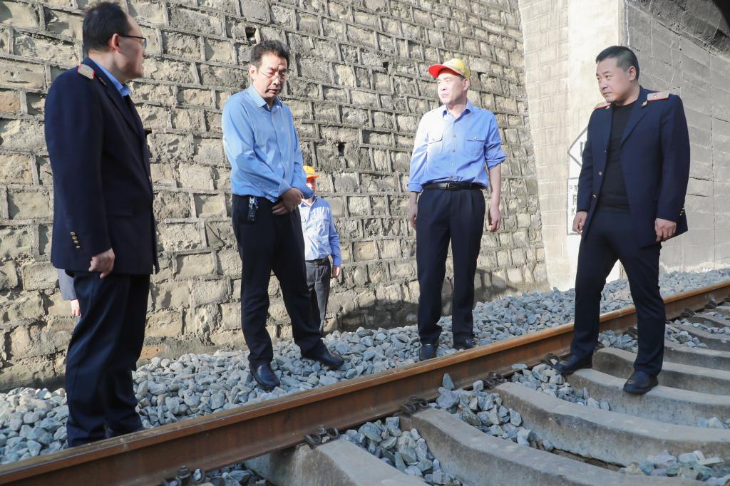 9月28日下午,公司副總經(jīng)理劉建偉帶領(lǐng)基本建設(shè)部、生產(chǎn)技術(shù)部相關(guān)人員,深入鐵路運(yùn)輸公司檢查指導(dǎo)“雨季三防”工作,該公司經(jīng)理王金星、黨委書記任旭博陪同。