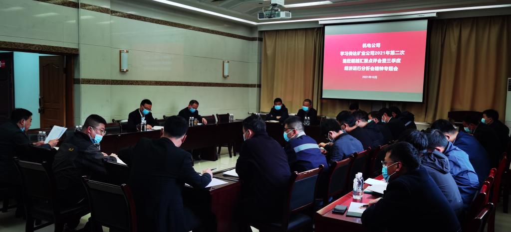 10月27日,機(jī)電公司在四樓會(huì)議室召開(kāi)專題會(huì)議,傳達(dá)落實(shí)礦業(yè)公司2021年第二次追趕超越匯報(bào)點(diǎn)評(píng)會(huì)暨三季度經(jīng)濟(jì)運(yùn)行分析會(huì)精神,對(duì)前三季度經(jīng)營(yíng)工作進(jìn)行了總結(jié)分析,對(duì)下一步重點(diǎn)工作進(jìn)行了安排部署。該公司領(lǐng)導(dǎo)班子及各單位負(fù)責(zé)人共計(jì)20余人參加會(huì)議。