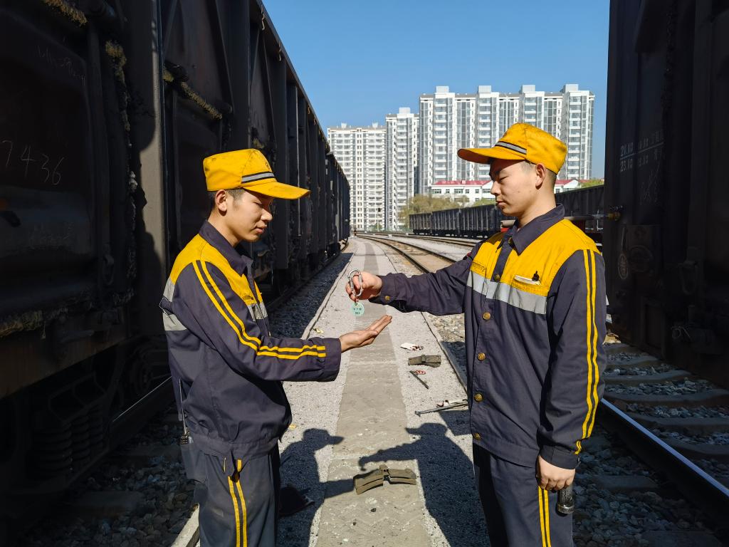“熟悉本站內(nèi)線路、設(shè)備、建筑及列車運(yùn)行、調(diào)車作業(yè)、車輛取送等情況;拒絕違章指揮,杜絕違章作業(yè)……”新來的青工仝樂背誦著。