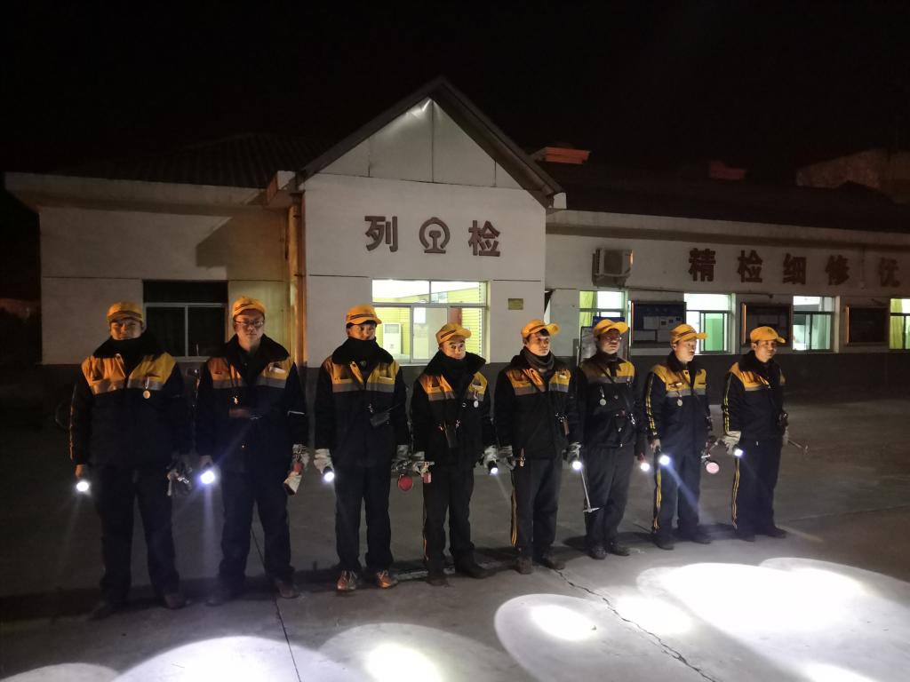 “翻越停留車輛的時候南北兩頭做好防護(hù),禁止從車鉤下面通過,對信號時注意規(guī)范動作。夜間作業(yè)行走保證手燈常亮?!薄懊靼?。”檢車班長胡紅選在作業(yè)前對班組成員叮囑道。