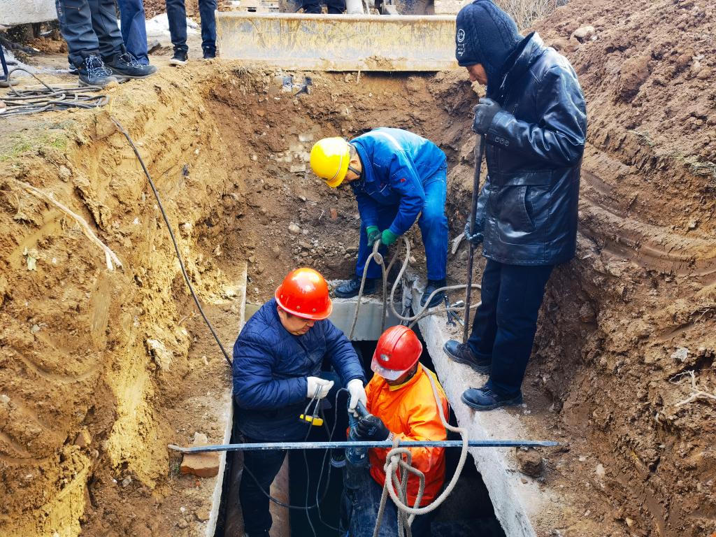 為了縮短搶修時(shí)間,維修隊(duì)人員在零下12℃的寒冬連續(xù)作業(yè),經(jīng)過抽排水、吊裝鋼管、法蘭連接、鋪設(shè)石板、恢復(fù)地面、現(xiàn)場(chǎng)清理等一系列工作,于31日晚上21時(shí)完成搶修任務(wù),恢復(fù)了新區(qū)熱水使用。