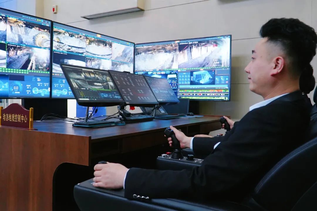 “就像電影里開無人戰(zhàn)斗機(jī)一樣,采煤機(jī)、支架操控功能鍵集于單手,左右手同時(shí)協(xié)同操作,基本不用尋鍵,避免了長時(shí)間在操控臺上數(shù)小時(shí)連續(xù)遠(yuǎn)控開采的身體負(fù)荷,還有多模式按摩、通風(fēng)與加熱功能,在舒適坐姿下,手眼并用,即可完成遠(yuǎn)程精準(zhǔn)開采……” 采煤機(jī)司機(jī)張東峰將座椅調(diào)節(jié)至舒適姿勢,緊握遙桿操,一手操作井下“仿生眼睛”的云臺攝像儀,一手操控工作面各類設(shè)備,屏幕上實(shí)時(shí)呈現(xiàn)了采煤機(jī)左右滾筒、支架、機(jī)頭機(jī)尾區(qū)域等全景圖像。